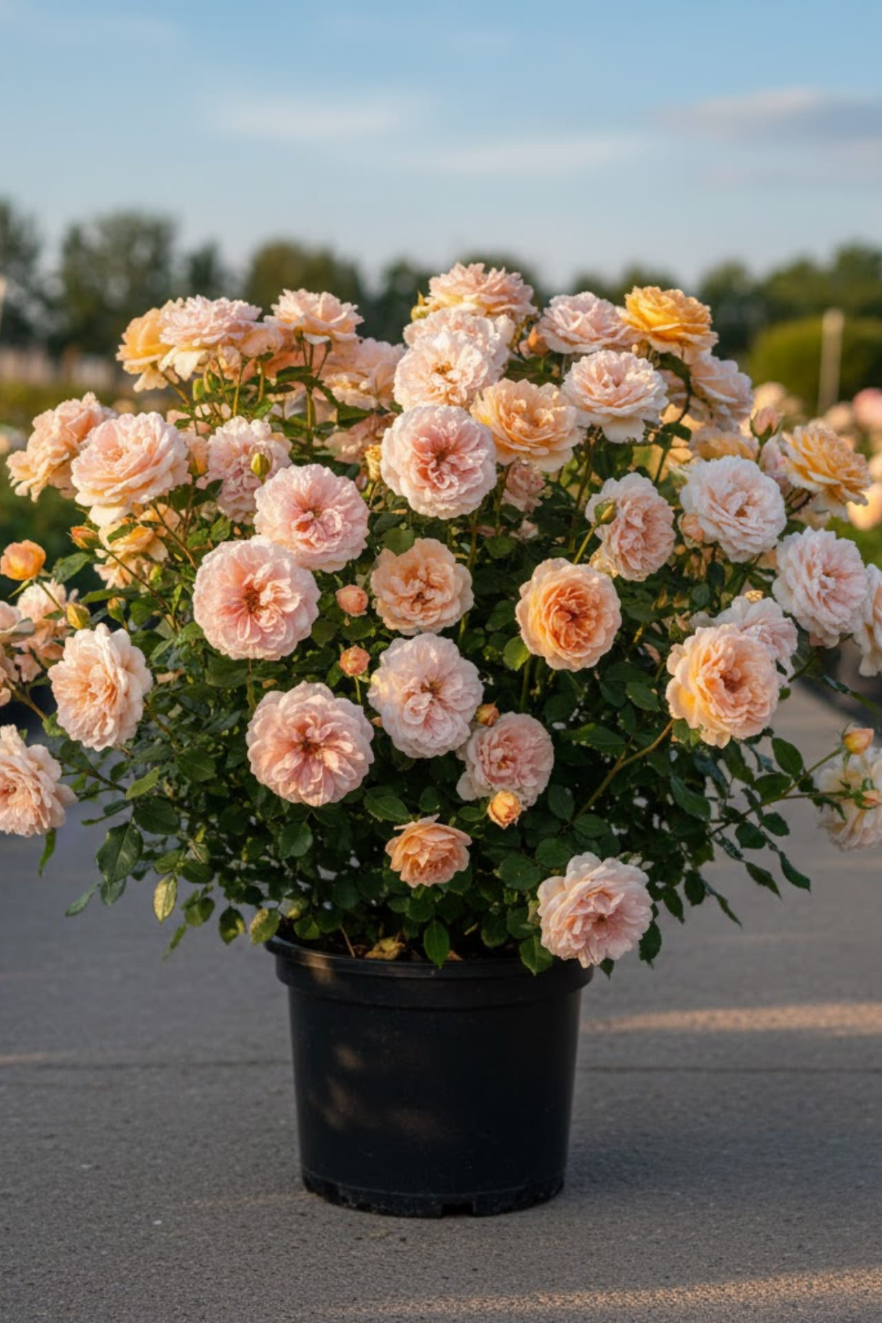 - Кремовые, с оттенками нежно-желтого, средне-махровые (около 25 лепестков) цветки появляются в небольших соцветиях на компактном кусте. Размер цветка 8-10 см